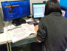 「パソコン市民講座」の授業は、個別学習型の映像講座です。指導経験豊かな講師の映像講座を受けながらパソコンを操作し、分からない所は教室のインストラクターがアドバイスするというスタイルで授業が進みます。