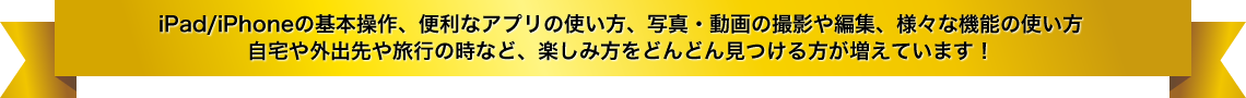 iPadで写真を撮ったり印刷したり色々と戸惑ったりで大変ですが、講師の先生方に助けていただいています。また、iPhoneも何とか少しずつ慣れて使えるようになり、毎日楽しく通っています。