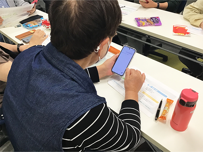 ご自身のスマホを操作しながら、「へえ~、こんなこともできるのね」と一つひとつ丁寧に確認されていました。