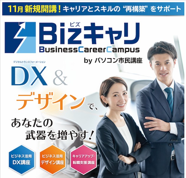 パソコン市民講座より、待望の新カリキュラム「Bizキャリ ビジネス活用DX講座」が開講いたしました。
