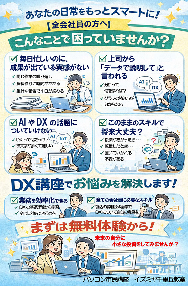 大阪北摂地域 摂津市&吹田市の、パソコン市民講座 イズミヤ千里丘教室です。