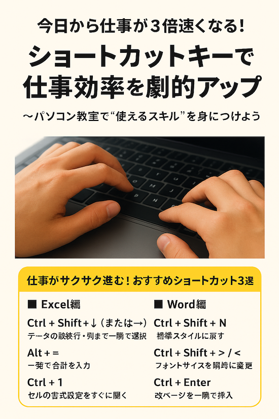 実は、ほんの少しの“ショートカットキー”を覚えるだけで、作業スピードは驚くほど変わります。
