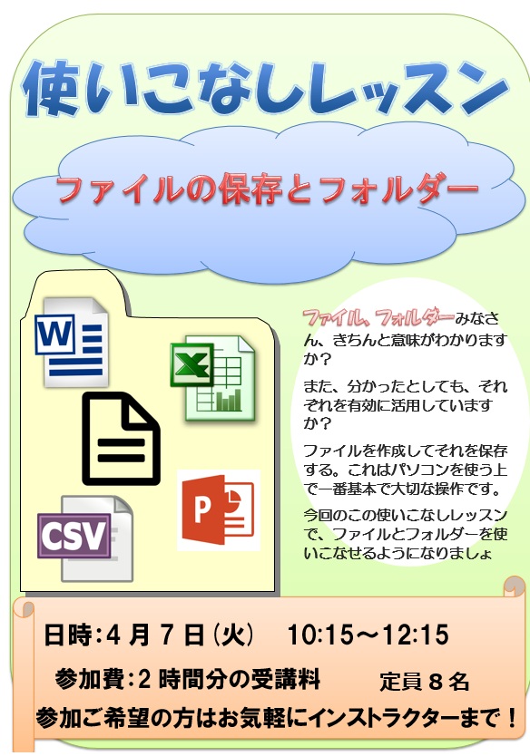 パソコン操作の基本中の基本、整理整頓のコツをじっくり学びます。