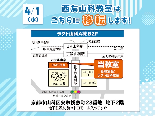この度、2026年4月1日より、ラクト山科教室としてリニューアルオープンいたしました。