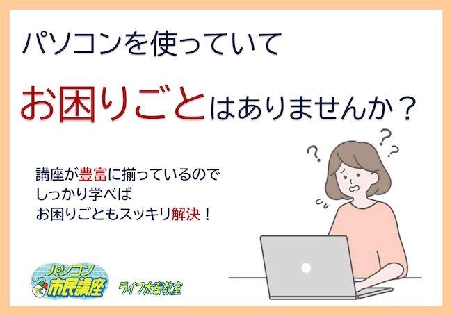 パソコンを使っていると、いろんなメッセージが出たり、いつも同じところでつまずいたり、逆にこの間はできたのになんで今日はできないんだろう…なんてことがありませんか?