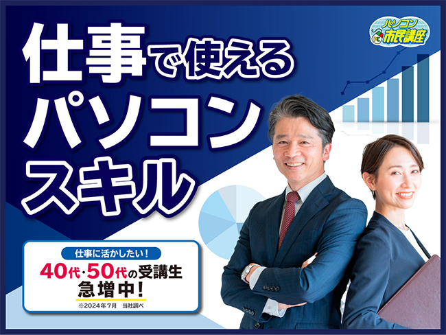 「パソコン市民講座」では、このように受講生の皆様が学習で身に付けたスキルを活かして、より一層楽しくパソコンやiPad・iPhoneなどを日頃から使っていただき、便利な生活を送るためのITスキルを「すべての世代の方々に」ご提供させていただくため、これからも教室運営を行ってまいります。