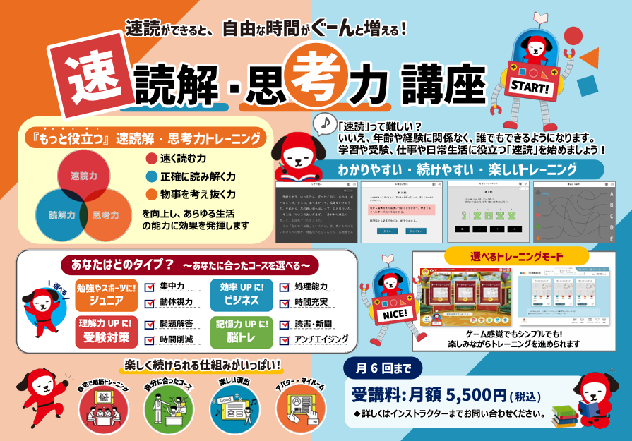 教室の雰囲気を確かめながら、最新の速読ソフトを実際に触ってみてください。