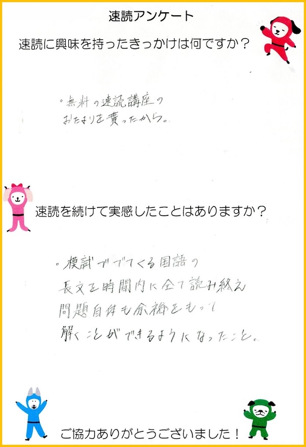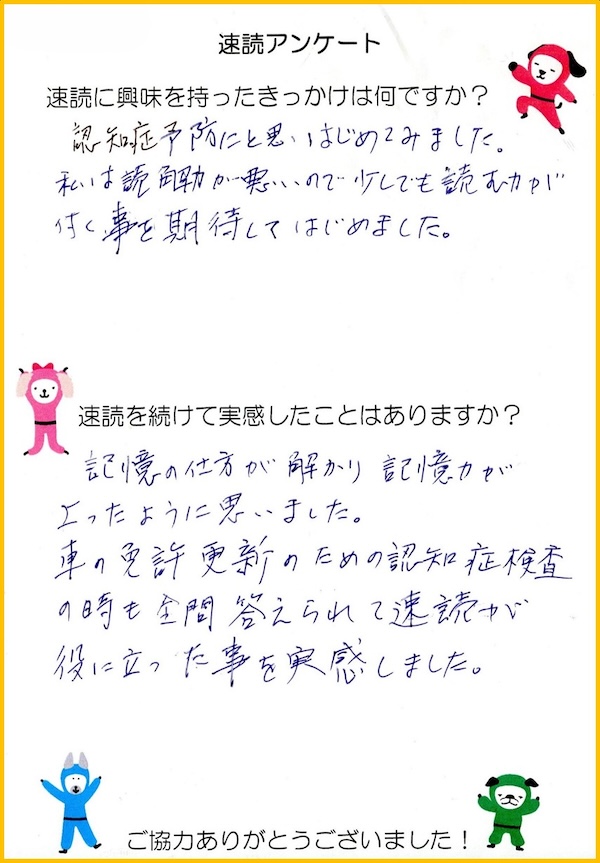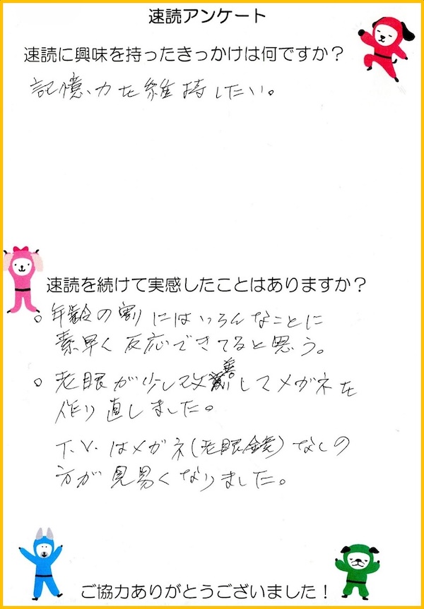 今回は速読の受講生の中で幅広い年代にアンケートを取りました。
