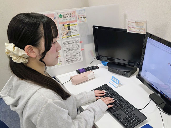 パソコンをほとんど使ったことがなかったんです。実は、大学のレポートもiPhoneで作成して、コンビニで印刷していました。でも「これではいけない、まずはタイピングが上手になりたい!」とパソコンに興味が出てきた頃に、母から「イオン橋本店にパソコン教室がある」と教えてもらったのがきっかけで、体験に申し込みました。