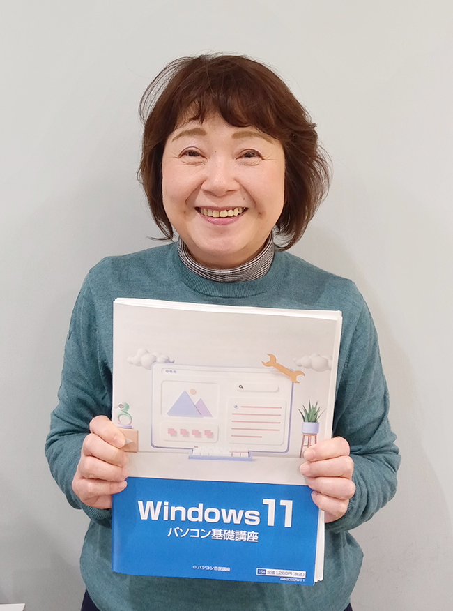 現在は「Windows11 パソコン基礎講座」を受講されています。通い始めて2ヶ月程ですが、検索やはがきの作成までできるようになりました!これからも楽しみながらスキルアップしていきましょう。