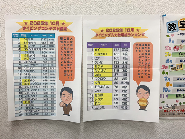 教室には小学生からシニアの方まで幅広い年齢層の方が通っておられ、全国の教室に通われている生徒さんでランキングが発表されます(∩´∀`)∩