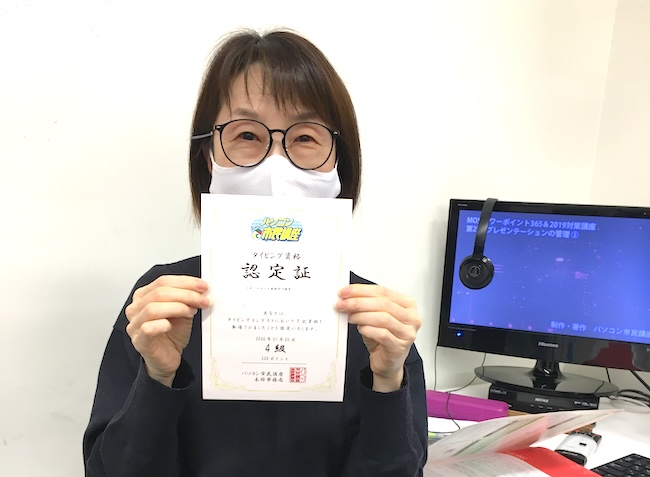 Sくんは10月から受講を開始しました。人差し指から初めて今は促音(小さい「つ」のつく文字)を練習中です。ついつい「失敗するかも」という不安から手元を見てしまっていましたが、だんだんと手元を見ずに打てるようになっていき、見事「ランクアップ」できました!