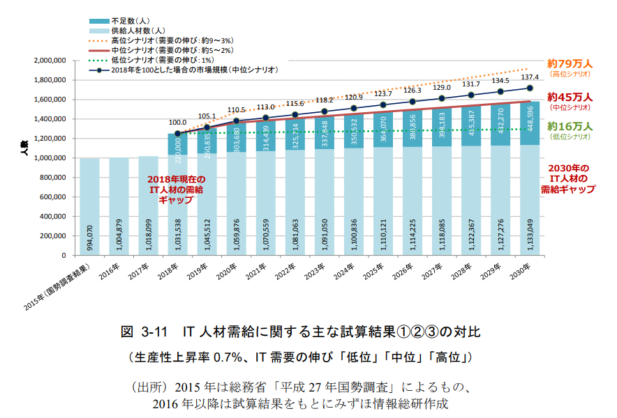 引用:平成 30 年度我が国におけるデータ駆動型社会に係る基盤整備(IT 人材等育成支援のための調査分析事業)- IT 人材需給に関する調査 -