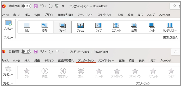 一方、トランジションはスライド間の切り替えを強調し、プレゼン全体に統一感をもたらします。