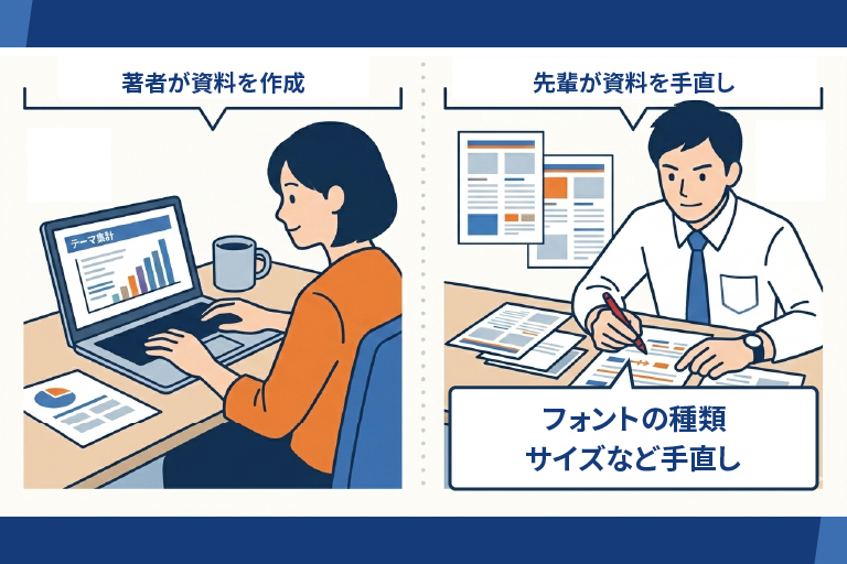 自身が作ったプレゼン資料を、先輩が手直しを入れるのですが、その時にフォントの種類やサイズなど、細かいところまで調整していたのを覚えています。さりげないことですが、そういった細かい気配りが資料全体の印象を変え、それによってプレゼンターの印象も変わってくるのだろうなと感じていました。