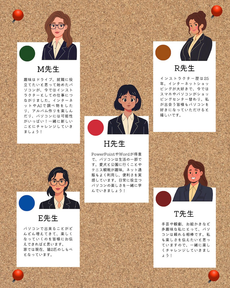 笑顔あふれる教室で、みなさんと「パソコンって楽しい!」を広めています。