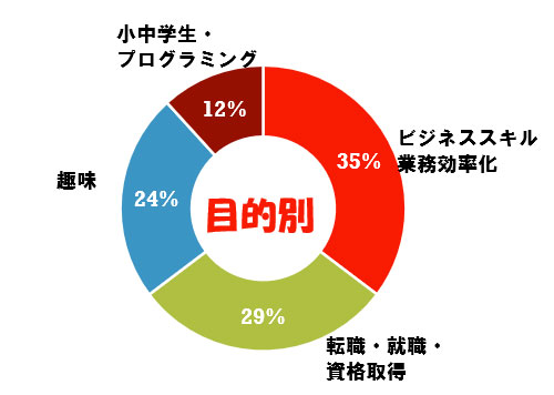 最も多いのは「ビジネススキル・業務効率化」。エクセルやワード、パワーポイントやキャンバ(Canva)など、仕事に活かせるスキルの習得を目指す方が中心です。